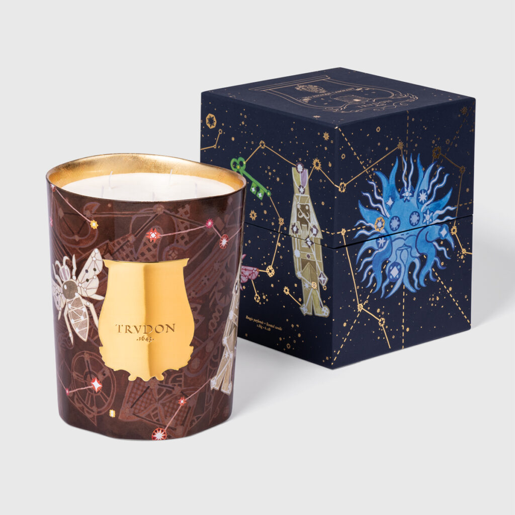 Christmas Tree Head notes: Leather, Siberian Pine, Fir tree Heart notes: Galac Wood, Cedar, Myrrh Base notes: Ambergris, Spanish Cistus, Absolute Incense, Patchouli. Burn time: 55-60 hours.